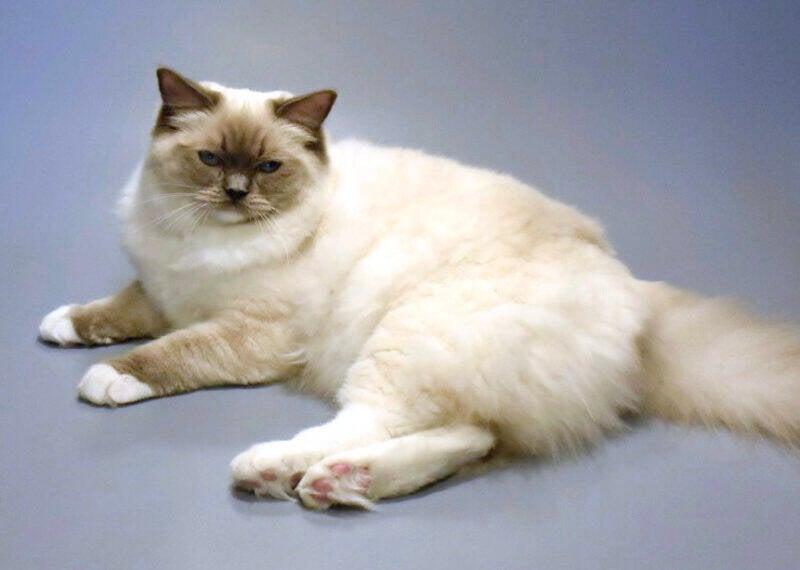 Bij een colorpoint zijn de oren, neus, staart en poten donker gekleurd en de rest van de vacht is creme. Er is geen wit.