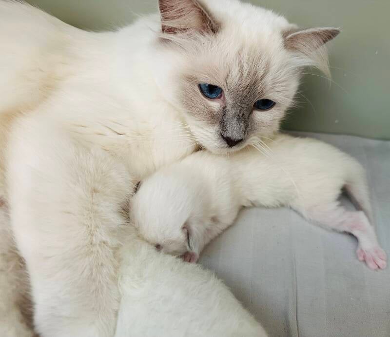Alle kittens zijn daarmee lilac of chocolate in de aftekening mitted of bicolor en kunnen ook nog tabby zijn.
